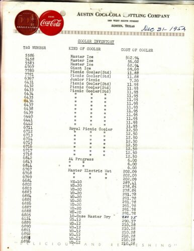 Title (ebay affiliate link): AUSTIN COCA-COLA BOTTLING CO LETTERHEAD. DATED DEC. 31, 1954 COOLER INVENTORY