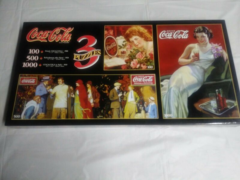 SEALED COCA COLA 3 iN 1 JIGSAW PUZZLES,100,500,1000 Pcs.LADIES & AFTER THE GAME