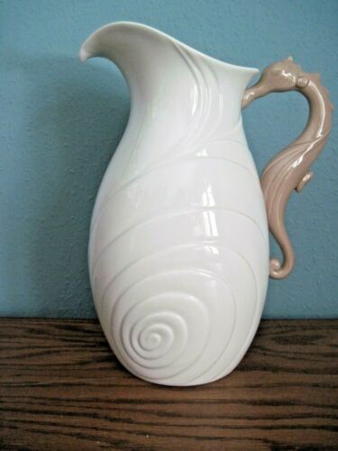 Decorative Vase or Pitcher," By The Sea," White Glass with Brown Sea Horse Handl