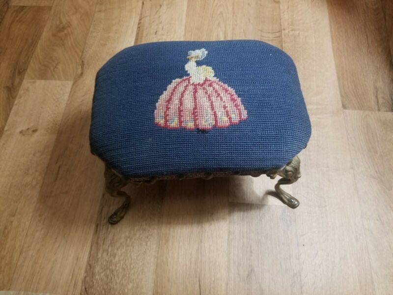 Title (ebay affiliate link): ANTIQUE SMALL FOOT STOOL WITH ORNATE CAST IRON LEGS - 1800''S NEEDLEPOINT