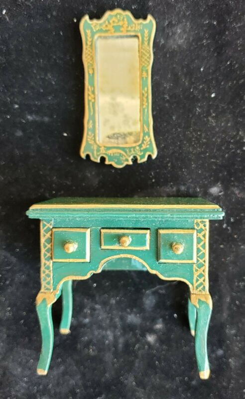 Title (ebay affiliate link): Fine 1977 Miniature Vanity w Mirror, Chinoisserie Stencilled Dollhouse Furniture