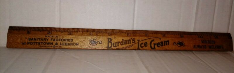 Vintage Burdan''s Ice Cream Pottstown Lebanon PA Advertising Wood Ruler