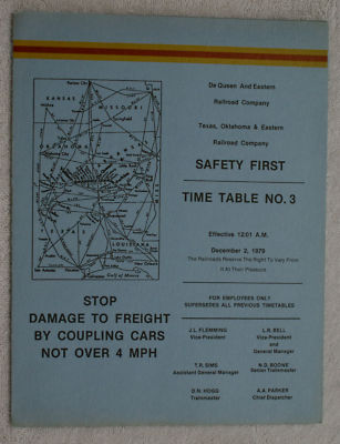 Timetable De Queen & Eastern, T. O. & E Railroads