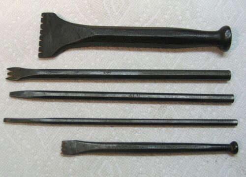 Antique VIntage Iron Forged Stone Carver''s Tools, Chisels - Set of 5