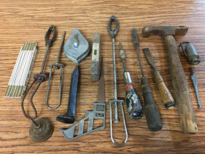 Title (ebay affiliate link): Lot Vintage And Antique Tools. Zig-zag Rule, Screw Drivers, Oiler, Saw Tightener