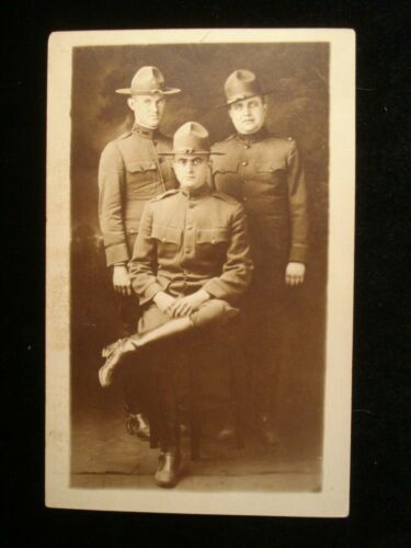 Title (ebay affiliate link): Early RPPC Military Photo Stratton Felt Campaign Hats - Studio Photo Of 3 Men