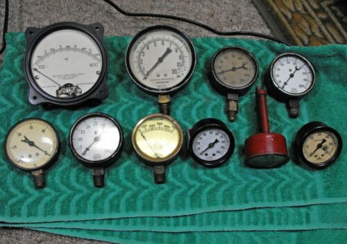 10 antique brass metal steam pressure gauges NEW GRIDLEY US Gauge Jas+ STEAMPUNK