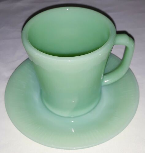 Title (ebay affiliate link): VTG Jadeite Green Fire King Milk Glass D Handle Mug w/ #36 Jane Ray Saucer