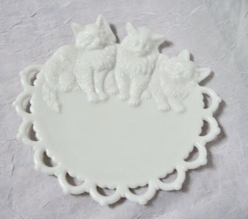 VINTAGE WESTMORELAND WHITE MILK GLASS THREE KITTENS PLATE