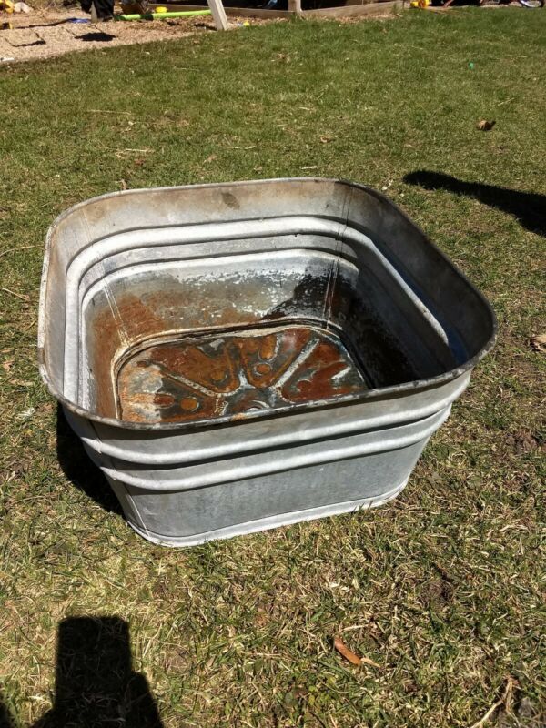Title (ebay affiliate link): Antique Vintage Square Galvanized Metal Wash Tub with center drain planter