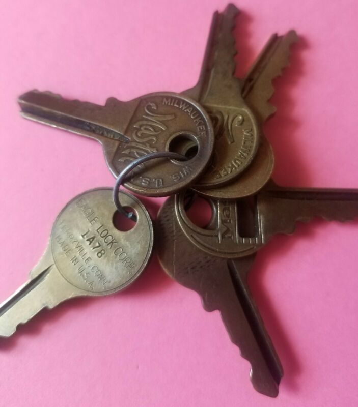 Title (ebay affiliate link): Vintage Keys Master Star Eagle Lock Padlock Brass Lot Pendant Numbered Stamped
