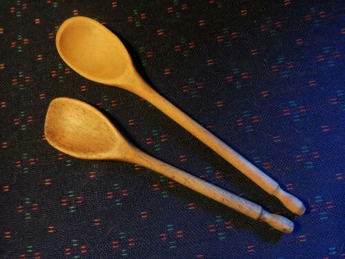 Title (ebay affiliate link): 2 Antique 19th C. One Piece Maple Wood Cooking Stirring Spoons Primitive Treen