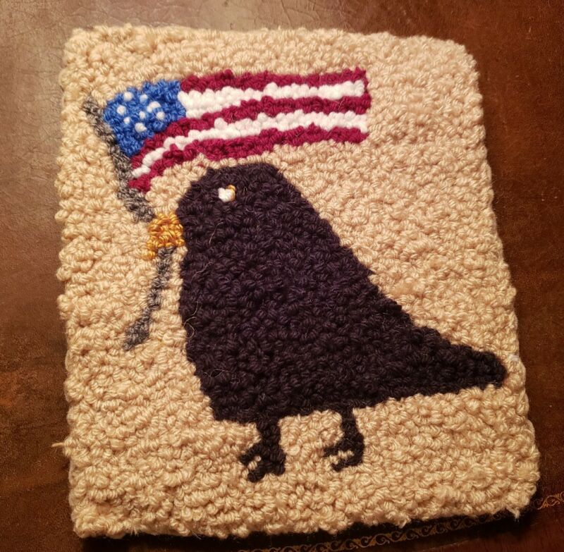 Title (ebay affiliate link): Handmade Primitive Americana Crow Hooked Rug**Primitive