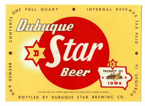 Title (ebay affiliate link): Beer Label, IRTP; Dubuque Star Brewing Co, Dubuque IA, Quart Star Beer