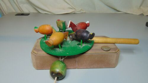 VINTAGE WOODEN FIVE CHICKENS PECKING PADDLE TOY