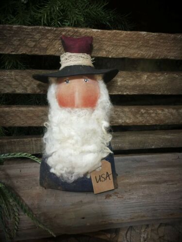 *Primitive b11x5in UNCLE SAM SITTER DOLL FABRIC HANDMADE Country old rusty doll*