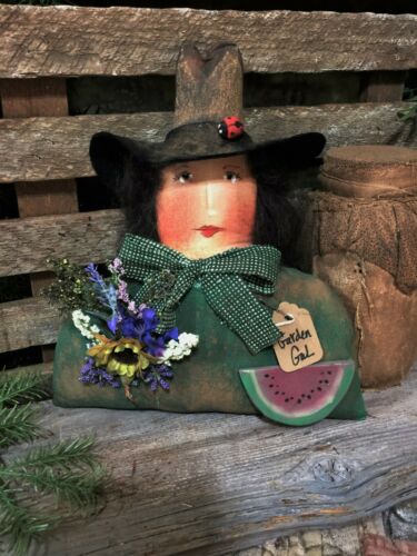 *Primitive 10x9in LG GARDEN GAL Fabric HANDMADE Country old rusty doll*