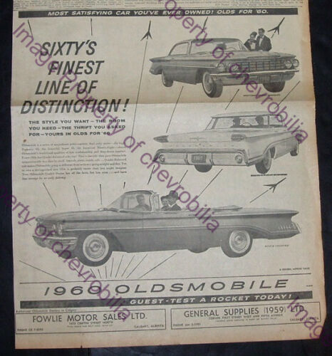 1960 Oldsmobile GM Canada 15x17" Original NEWSPAPER AD Olds SUPER Dynamic 88 98