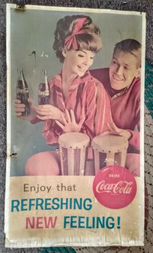Title (ebay affiliate link): 1950s COCA-COLA Double-Sided LITHO CARDBOARD SIGN...."Refreshing New Feeling"