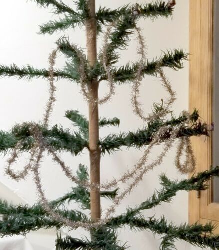 Title (ebay affiliate link): Early 1900s Silver Tinsel Garland. 6 feet in length. 25" in width. German