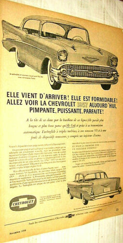 1956 CHEVROLET BEL-AIR SPORT COUPE 2-DOOR AUTOMOBILE ORIGINAL AD IN FRENCH