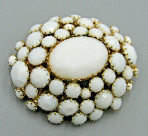 Title (ebay affiliate link): HIGH END Vintage Jewelry White Milk Glass Domed BROOCH PIN Rhinestone Lot G