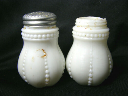 Title (ebay affiliate link): PAIR Antique Victorian Opal Milk Glass Shakers - Beaded Vertical