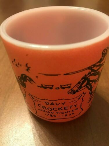 VINTAGE HAZEL ATLAS MILK GLASS DAVY CROCKETT CHILD CUP MUG PINK