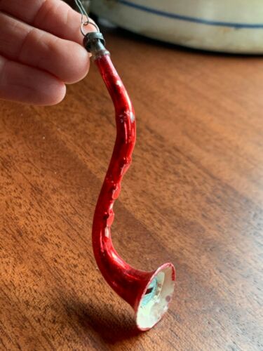 Title (ebay affiliate link): Antique German Glass Red Saxophone w/ Metal Insert Christmas Tree Ornament
