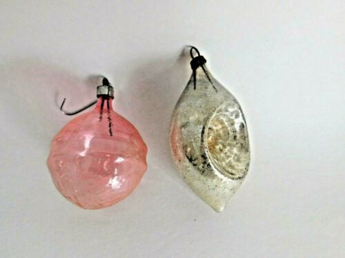 2 Old Antique Glass Christmas Ornaments One Indented 1930''s