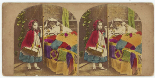 LITTLE RED RIDING HOOD & BIG BAD WOLF 19th CENTURY STEREOVIEW ANTIQUE PHOTO