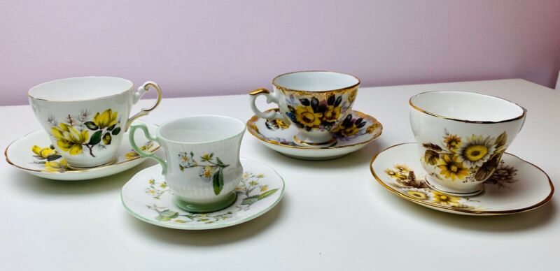 Title (ebay affiliate link): Set Of 4 Tea Cups & Saucers Yellow Flower Queens China, Regency, Duchess England