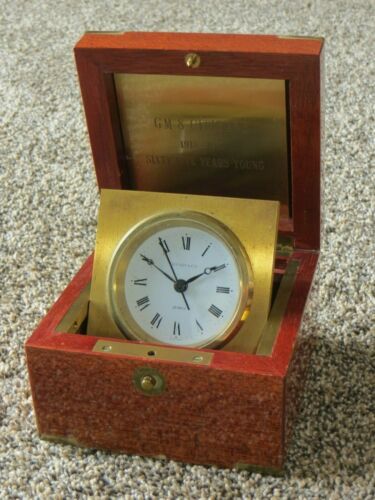 TIFFANY & COMPANY CLOCK WOOD DESK FLIP BRASS SWISS MADE nautical woody boat LR