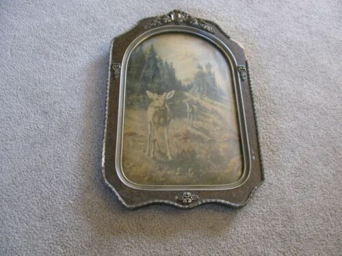 ANTIQUE BUBBLE GLASS WOOD FRAME WILDLIFE DEER W A CARSON PRINT