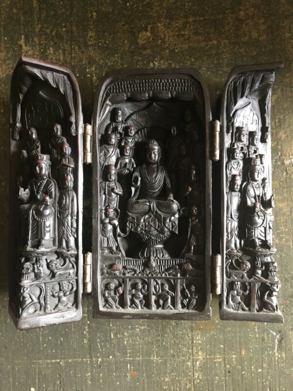Vintage antique wooden Carved Buddha Box