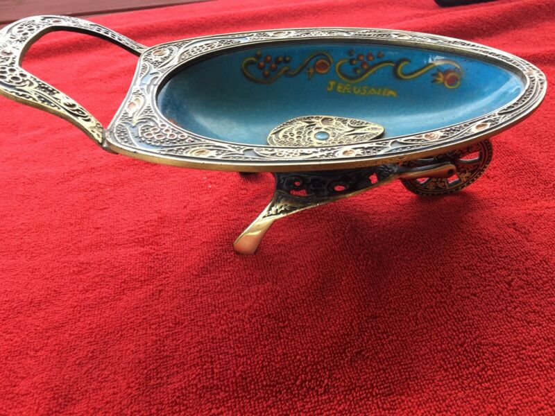Brass Judaica Bowl/Dish Wheel Barrow Jerusalem 7" x 11" x 6"