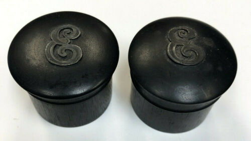 Two Antique Real Ebony France Turned Wood Canister Boxes Treenware Letter E