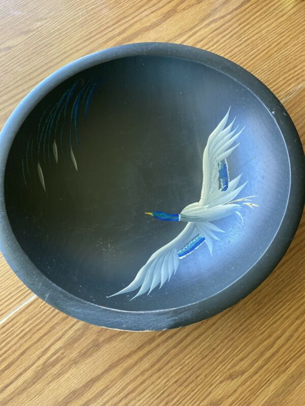 Munising Wooden Bowl Navy Blue With Handpainted Duck