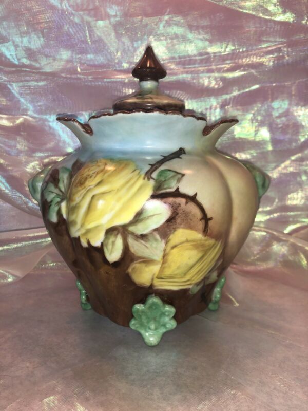 Title (ebay affiliate link): Vintage Antique Hand Painted Porcelain Tea Caddy/Biscuit/Cracker Jar Signed