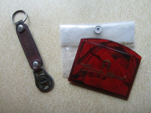 Set Vintage Etienne Aigner Hand Mirror in Plastic Case & Key Chain Fob