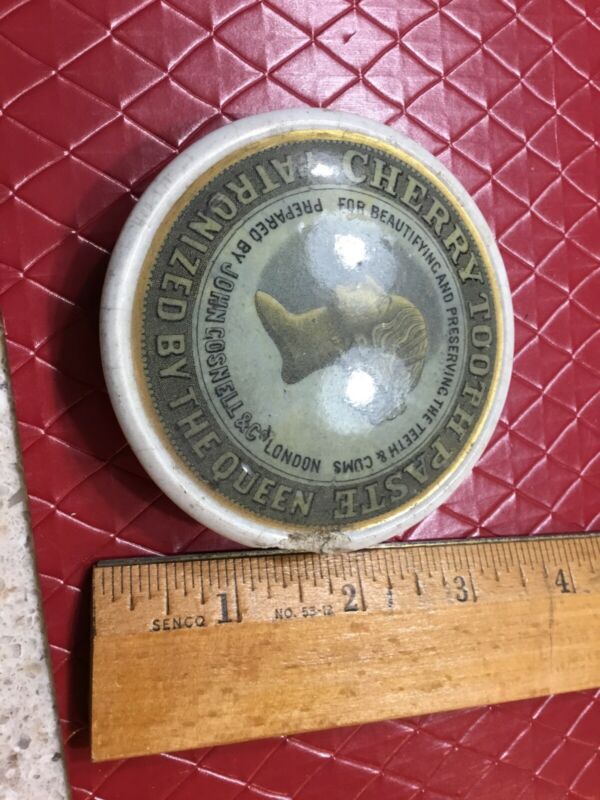 Title (ebay affiliate link): Vintage Porcelain Cherry Toothpaste Lid John Gosnell London Dental
