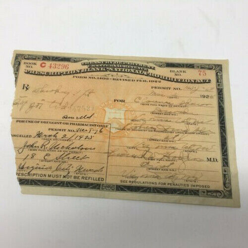 Title (ebay affiliate link): PROHIBITION PRESCRIPTION ANTIQUE WHISKEY 1925 VIRGINIA CITY NEVADA