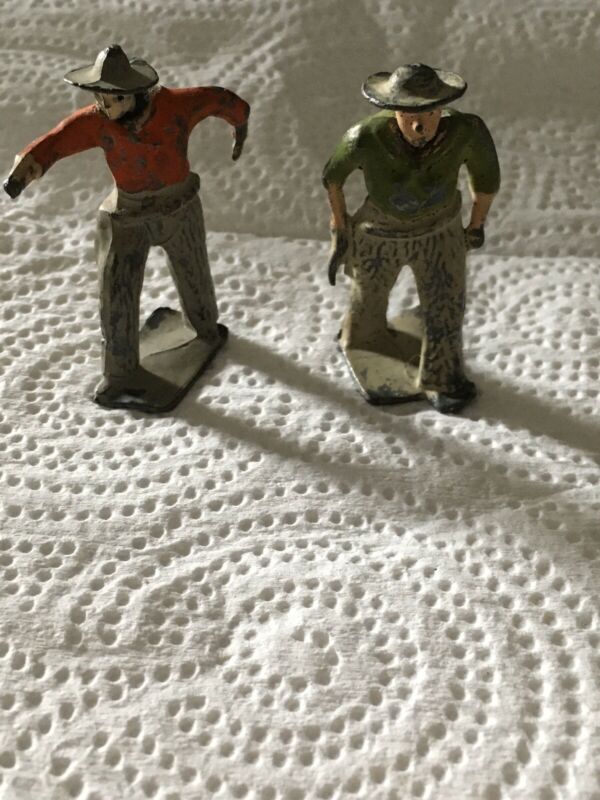 VINTAGE CAST IRON FIGURES 2 COWBOYS ALL MADE IN ENGLAND