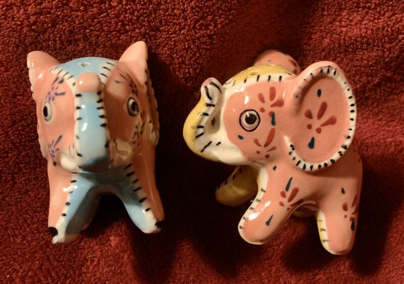 Title (ebay affiliate link): Vintage Japan Napco Ceramic Elephant Stitch Salt Pepper Shakers Pink Blue Yellow