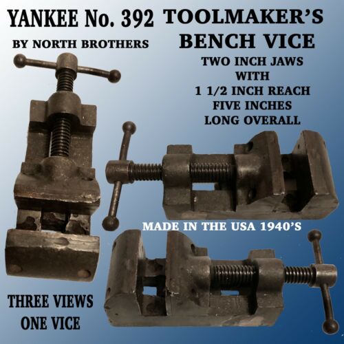 Title (ebay affiliate link): YANKEE # 392 VINTAGE TOOLMAKERS BENCH VICE WITH 2" JAWS BY NORTH BROS. CO.