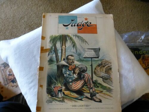 "JUDGE" MAGAZINE, DEC. 5, 1903-TEDDY ROOSEVELT, POLITICAL SATIRE, CARTOONS, DEMO