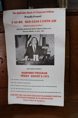 Title (ebay affiliate link): Red Lake Band Chippewa scarce poster Hubert Humphrey 1975 Chief Leading Feather