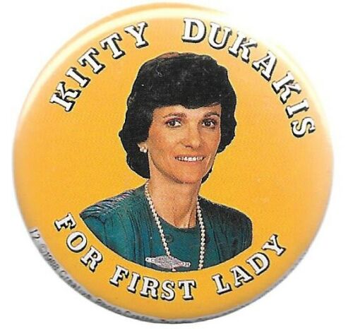 Title (ebay affiliate link): KITTY DUKAKIS FOR FIRST LADY COLORFUL 1988 POLITICAL CAMPAIGN PIN