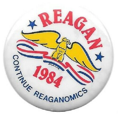 Title (ebay affiliate link): RONALD REAGAN CONTINUE REAGANOMICS WHITE VERSION 1984 POLITICAL PIN