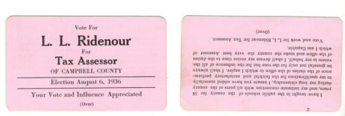 Title (ebay affiliate link): L L RIDENOUR TAX ASSESSOR 1936 CAMPBELL COUNTY TN POLITICAL CARD LAFOLLETTE TN